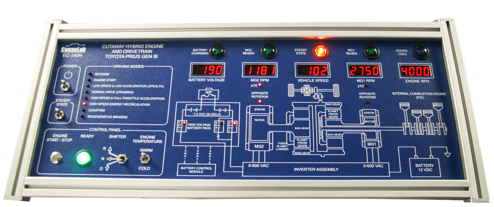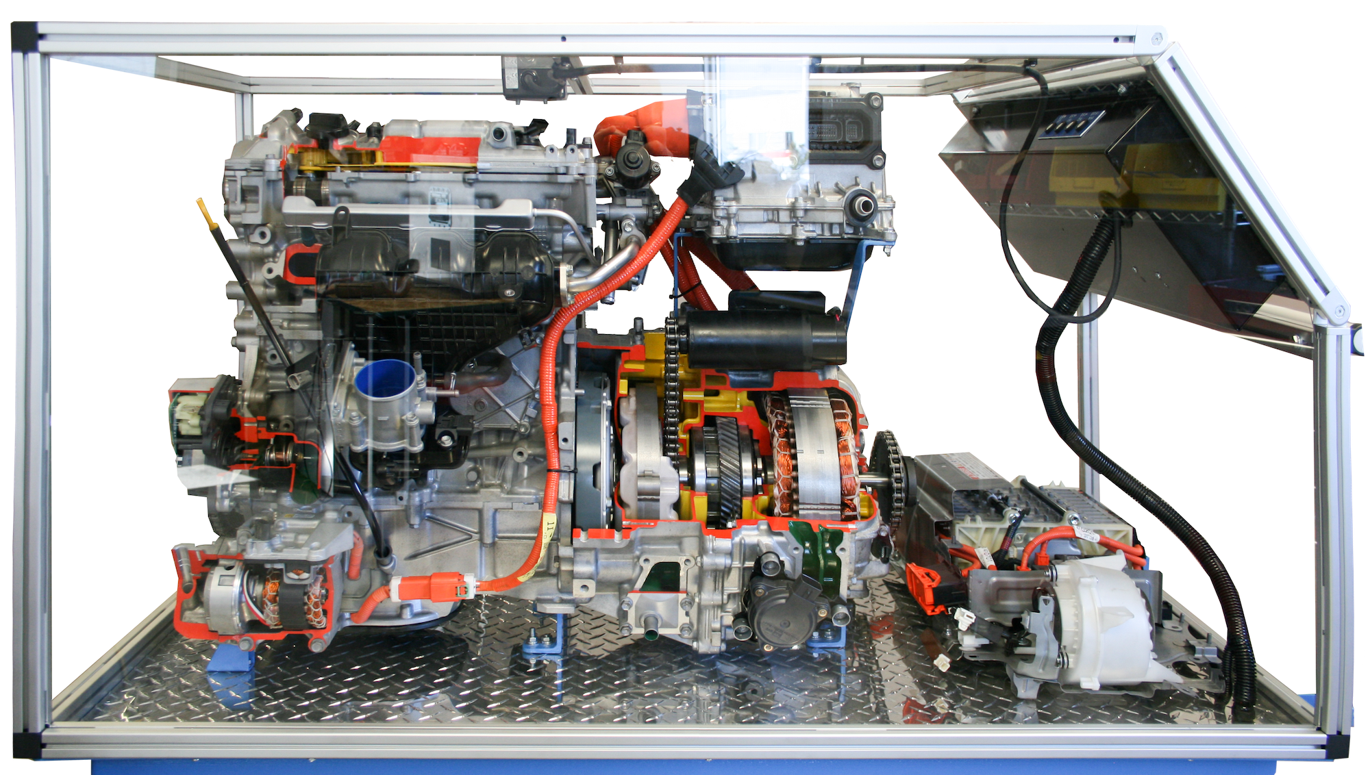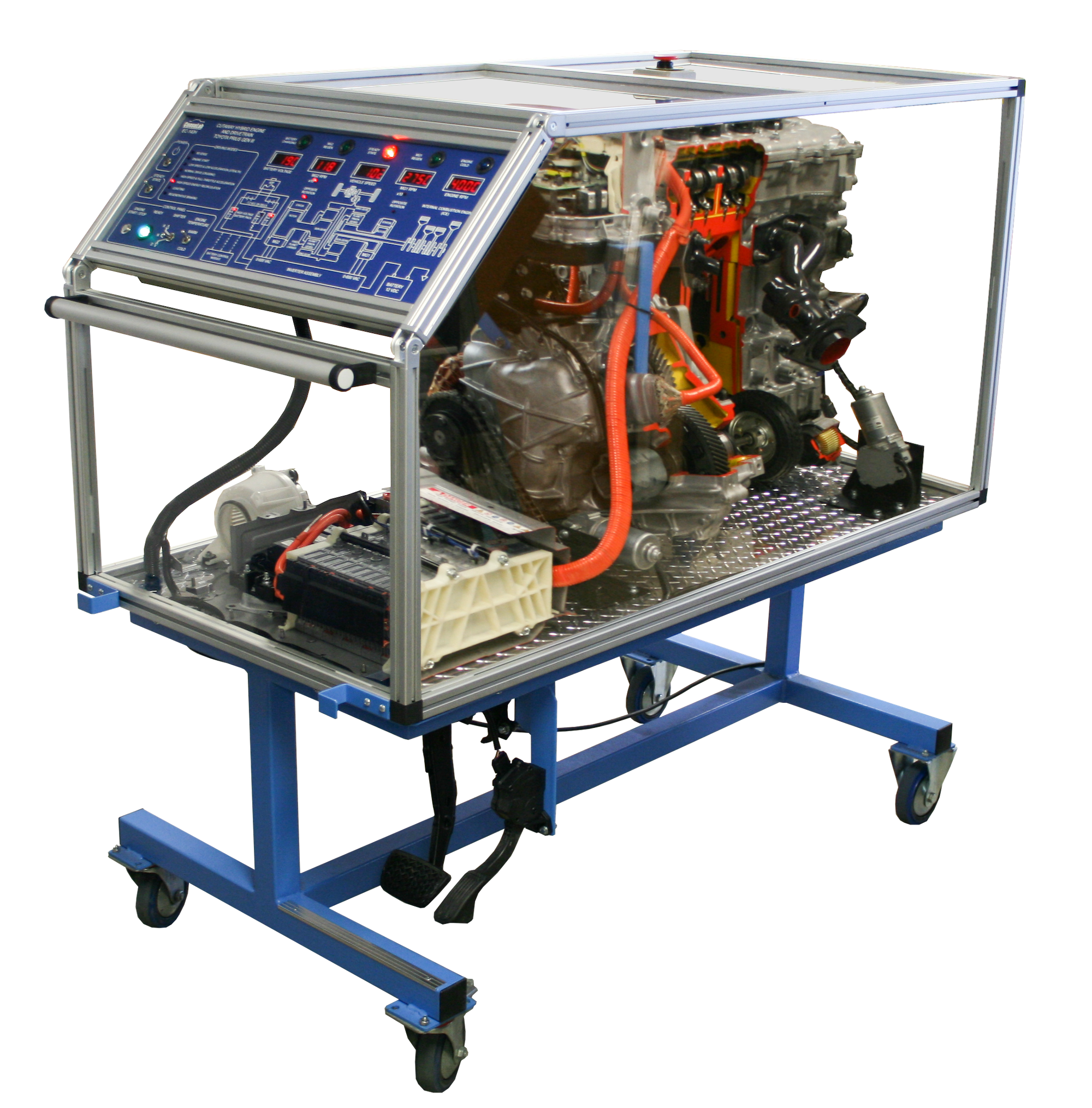 The EC-140H Cutaway Toyota Prius Hybrid Drive Train is a training system designed specifically for teaching how a typical hybrid drive train operates.