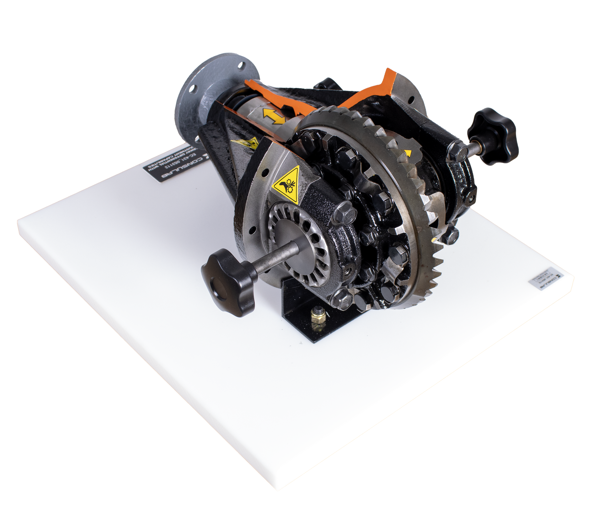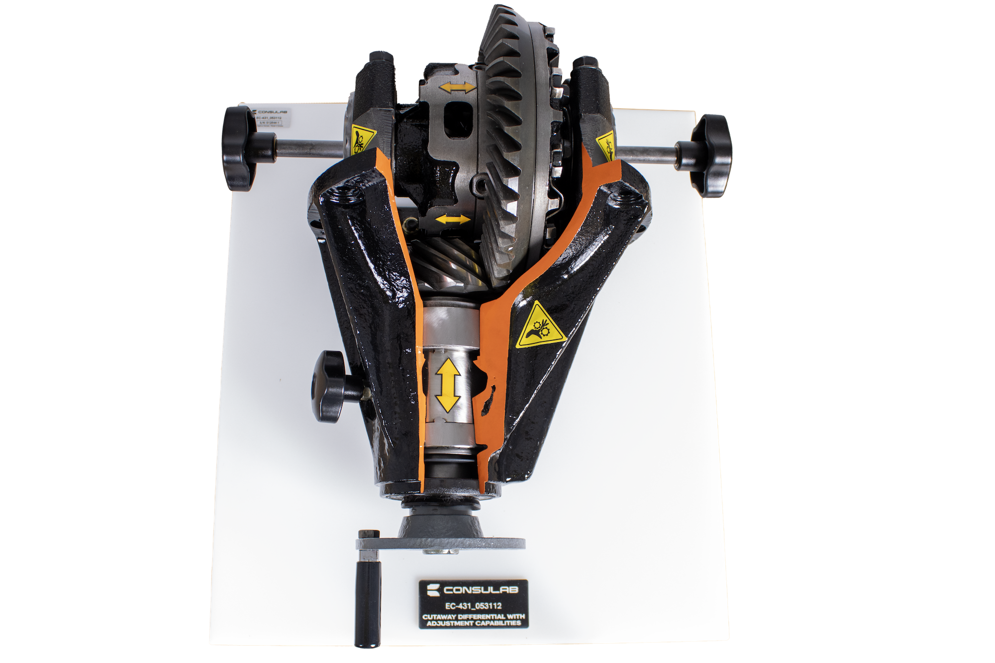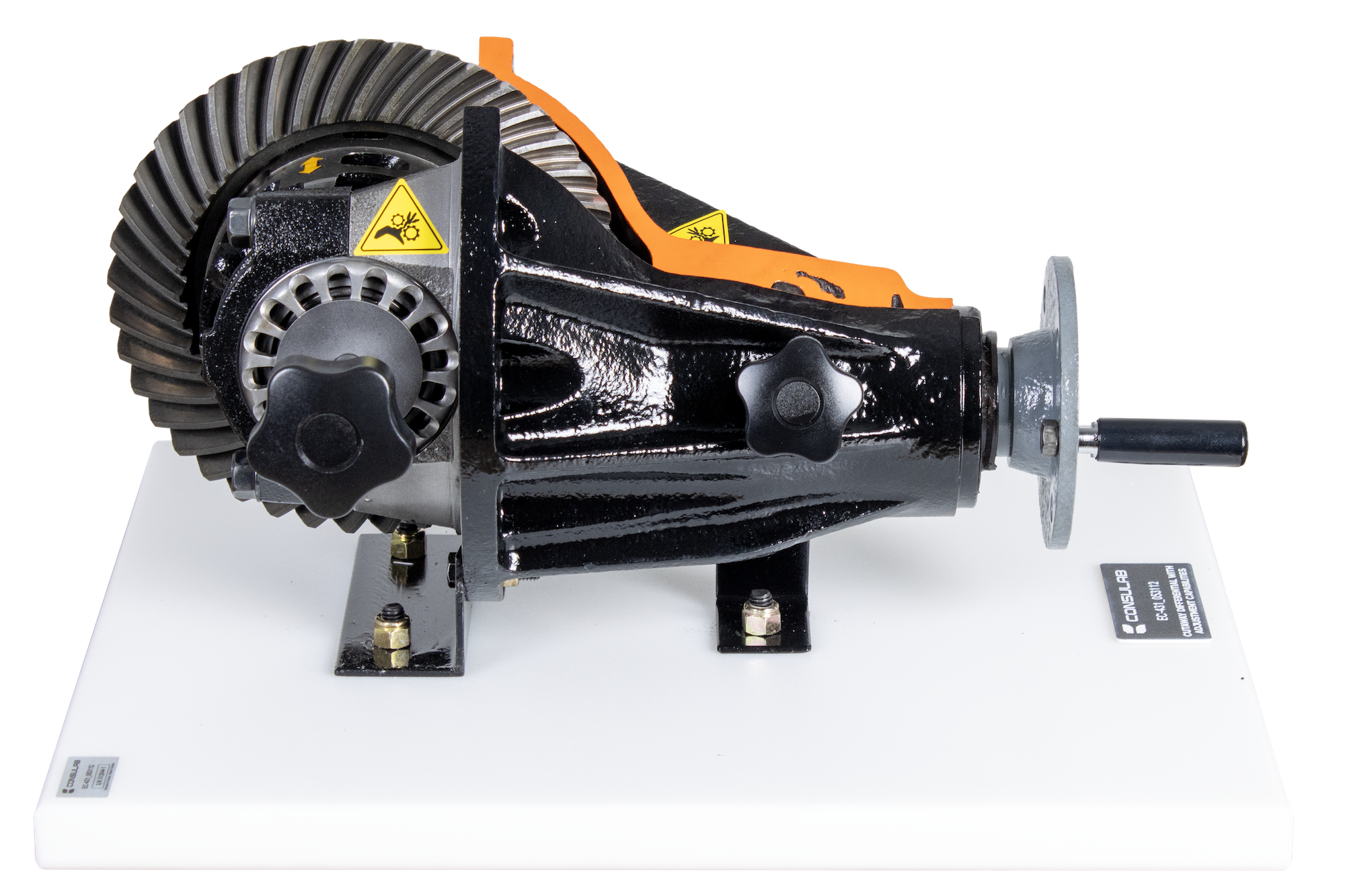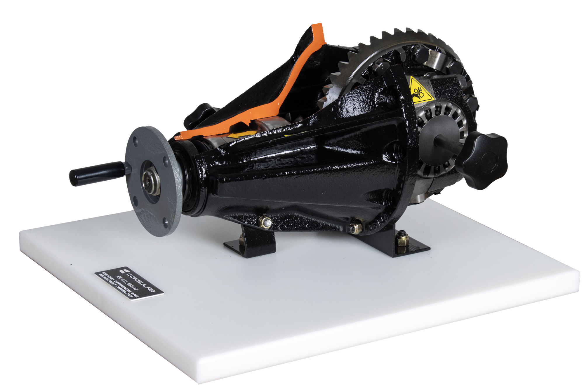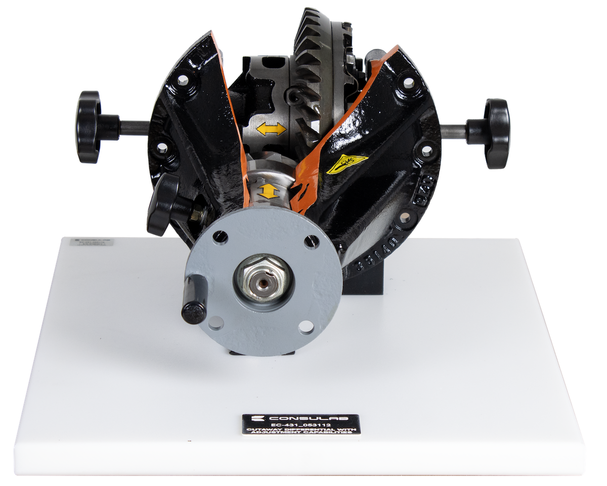 The ConsuLab EC-431 cutaway trainer is an application that can be chosen to demonstrate the operation of an adjustable open rear differential.